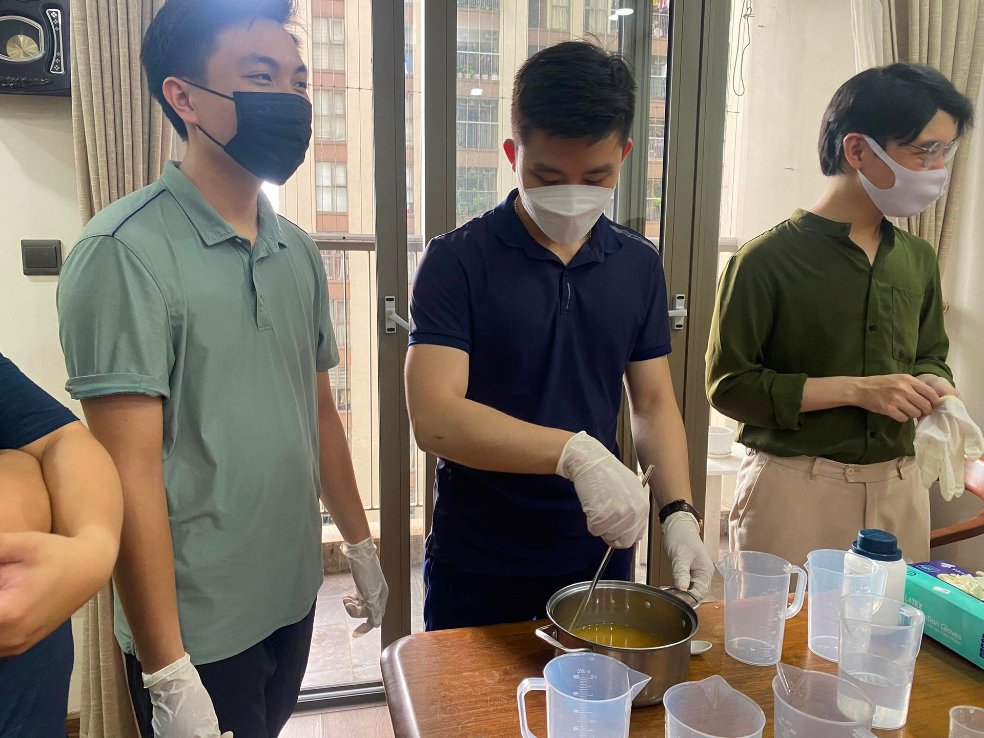 Buổi thực hành làm xà phòng từ dầu ăn đã qua sử dụng của các bạn tình nguyện viên