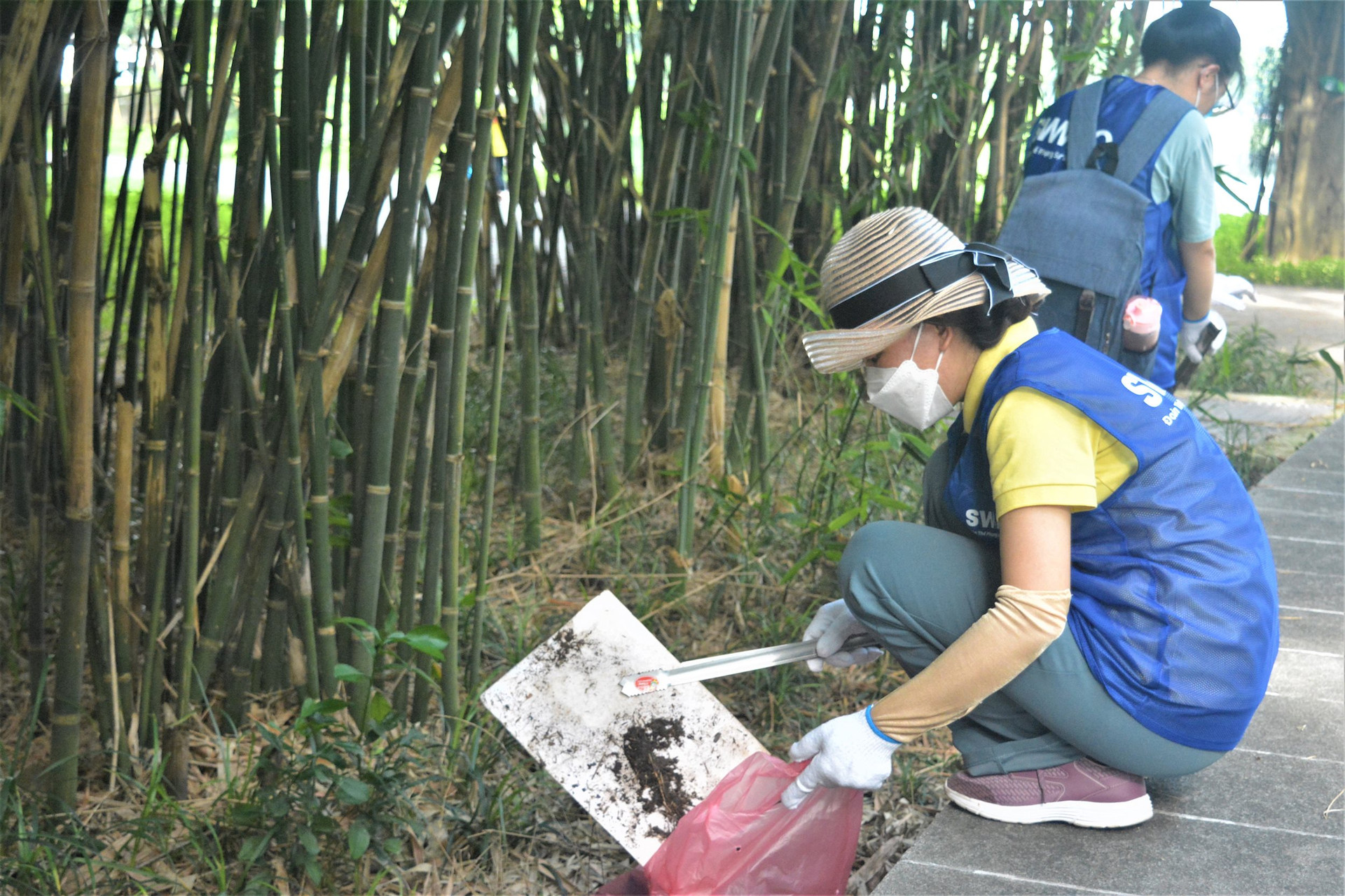 Các tình nguyện viên SV WAO thu gom rác thải tại công viên Yên Sở