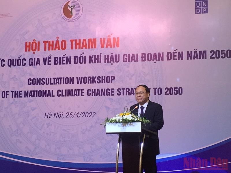 Sáng 26/4, tại Hà Nội, Bộ Tài nguyên và Môi trường phối hợp cùng Chương trình Phát triển Liên hợp quốc (UNDP) và Tổ chức Hợp tác quốc tế Đức (GIZ) tổ chức Hội thảo tham vấn Dự thảo Chiến lược quốc gia về biến đổi khí hậu giai đoạn đến năm 2050.