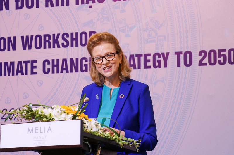 Phát biểu đóng góp ý kiến cho Dự thảo, bà Caitlin Wiesen, Trưởng đại diện thường trú Chương trình Phát triển Liên hợp quốc (UNDP) tại Việt Nam cho rằng, Chiến lược quốc gia về biến đổi khí hậu giai đoạn đến năm 2050 là một trong những công cụ chính sách vô cùng quan trọng để bảo đảm đạt được mục tiêu phát thải ròng bằng “0” vào năm 2050 cũng như xây dựng khả năng chống chịu cho cộng đồng tại Việt Nam.
