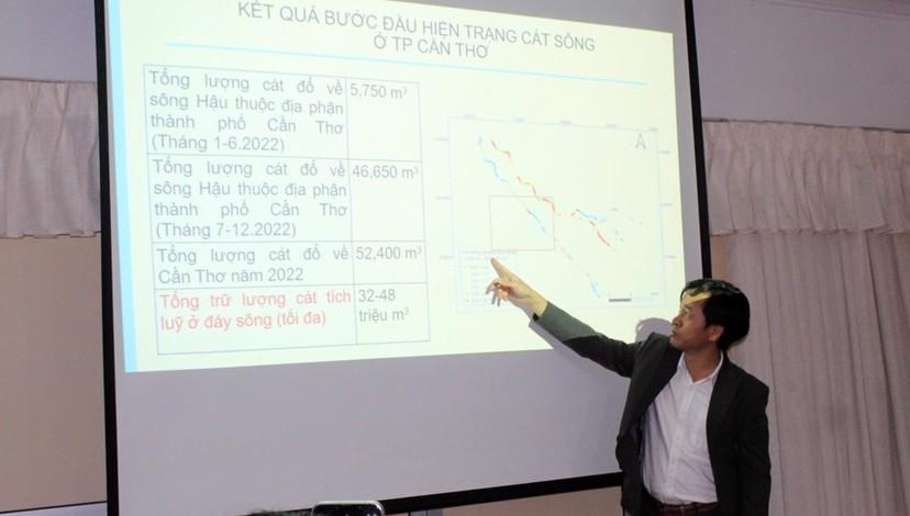 Ông Hà Huy Anh, Quản lý Dự án Quản lý cát bền vững (IKI SMP) của WWF Việt Nam thông tin, kết quả bước đầu của dự án IKI SMP cho thấy khối lượng cát khai thác hàng năm của các tỉnh ĐBSCL gấp 4-6 lần so với tổng lượng cát đổ về đồng bằng từ thượng nguồn. Tại TP Cần Thơ, tổng lượng cát đổ về trong năm 2022 là 52.400m3, tổng trữ lượng cát tích trữ dưới đáy sông Hậu trong vòng 60km qua địa bàn Cần Thơ từ 32-48 triệu m3.