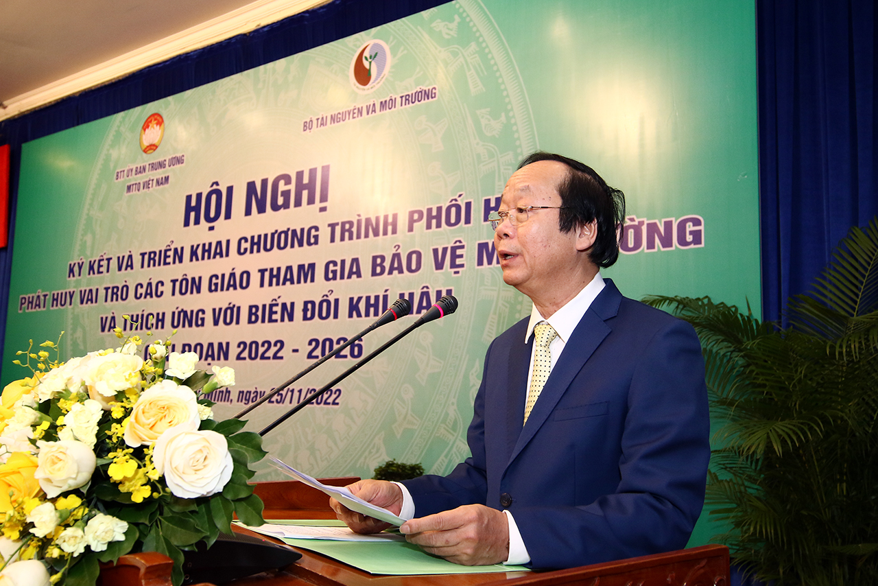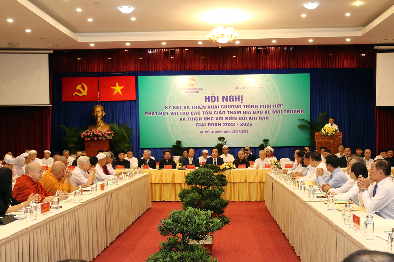 Tại hội nghị, Ban Thường trực Ủy ban Trung ương Mặt trận Tổ quốc Việt Nam, Bộ Tài nguyên và Môi trường cùng 43 tổ chức tôn giáo trong cả nước đã ký Chương trình phối hợp phát huy vai trò các tôn giáo tham gia bảo vệ môi trường và ứng phó với biến đổi khí hậu (Giai đoạn 2022 -2026). Việc triển khai Chương trình phối hợp trong giai đoạn 2022-2026 sẽ tiếp tục nâng cao nhận thức, ý thức trách nhiệm của các tổ chức, cá nhân thúc đẩy phong trào “Toàn dân tham gia bảo vệ môi trường”. Đặc biệt là phát huy có hiệu quả các giá trị văn hóa, đạo đức tốt đẹp và nguồn lực của các tôn giáo trong bảo vệ môi trường và ứng phó với biến đổi khí hậu, góp phần tích cực, chủ động trong thực hiện chiến lược bảo vệ môi trường quốc gia đến năm 2020, tầm nhìn 2030.