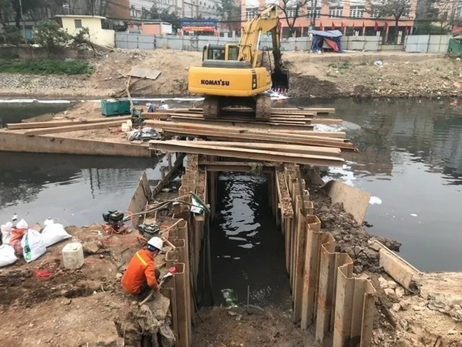 Hiện, nhà thầu đã thi công xong 21,12/21,98km cống (trong đó, phần đào mở 2.22km, đạt 96%; phần khoan kích 13,2km, đạt 100%); phần cống nhánh thu gom nước thải 5,7km, đạt 87%; hố ga đã thi công 100 cái, đạt 94%).