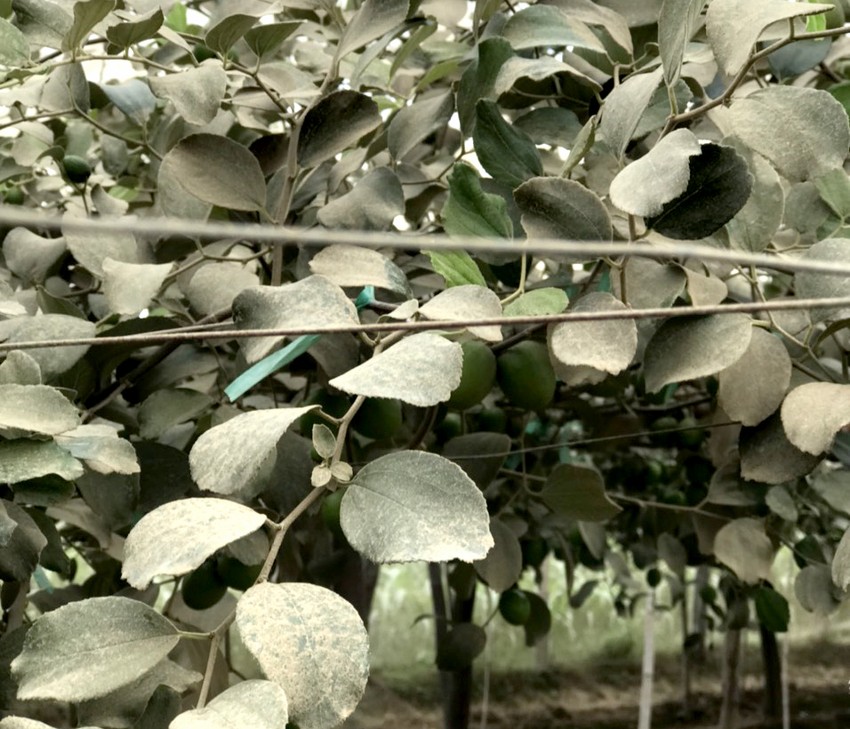Những vườn táo nằm cạnh công trình thi công cao tốc Bắc – Nam ở Ninh Thuận không thể đậu trái, lá bám lớp bụi dày không thể quang hợp....