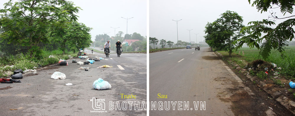 Trên tuyến đường Vành đai 5 đoạn qua xã Nga My (Phú Bình), các điểm tập kết rác thải tự phát đã được dọn dẹp sạch sẽ. Ông Nguyễn văn Hoành, Chủ tịch UBND xã Nga My, cho biết: Ngay sau khi Báo Thái Nguyên phản ánh, chúng tôi đã chỉ đạo dọn dẹp sạch rác thải trên tuyến đường này… Bà Ngô Thị Lừng, xóm Quán Chè, xã Nga My, người dân sống gần nơi bị vứt rác, nói: Cuối tuần trước, tôi thấy tổ vệ sinh đi thu dọn toàn bộ rác thải vứt trên vỉa hè, lòng đường. Hoạt động thu gom rác thải mấy ngày gần đây cũng được thực hiện thường xuyên hơn, tuyến đường trở nên sạch sẽ nên chúng tôi rất phấn khởi.
