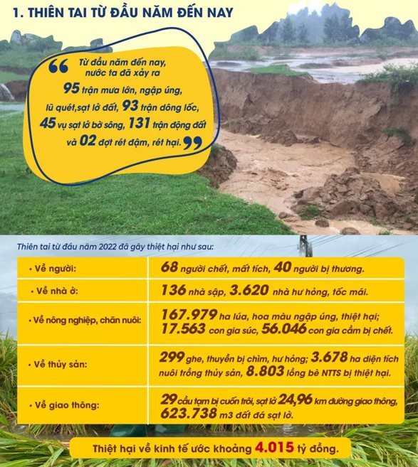 Báo cáo Đóng góp do quốc gia tự quyết định (NDC) cập nhật năm 2022 chỉ ra, biến đổi khí hậu (BĐKH) sẽ là một trong các tác nhân làm giảm tăng trưởng của Việt Nam. Nếu không có các giải pháp thích ứng hiệu quả, thiệt hại kinh tế sẽ vào khoảng 4,3 tỷ USD trong 10 năm tới. Nếu nước biển dâng và nhiệt độ tăng lên theo kịch bản xấu nhất, ước tính đến năm 2050, Việt Nam có khoảng 3,1 triệu người phải di cư nội địa.