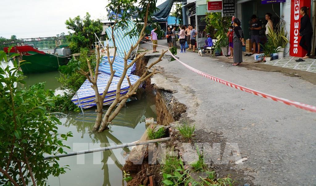 Sạt lở nghiêm trọng khoảng 30m đường giao thông tại Đồng Tháp