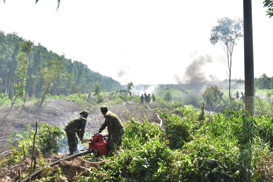 Nắng nóng gay gắt kéo dài nên hàng nghìn héc-ta rừng tràm do Ban Quản lý rừng (Phòng Tham mưu Bộ CHQS tỉnh Cà Mau) được phân công quản lý...