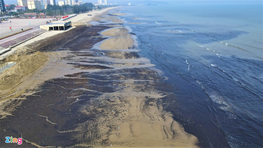 Hơn 1 km bãi biển Cửa Lò (Nghệ An) bị nhuộm đen bởi lớp mùn dày đến 20 cm. Mỗi ngày ngành chức năng cử lực lượng thu gom, chở...