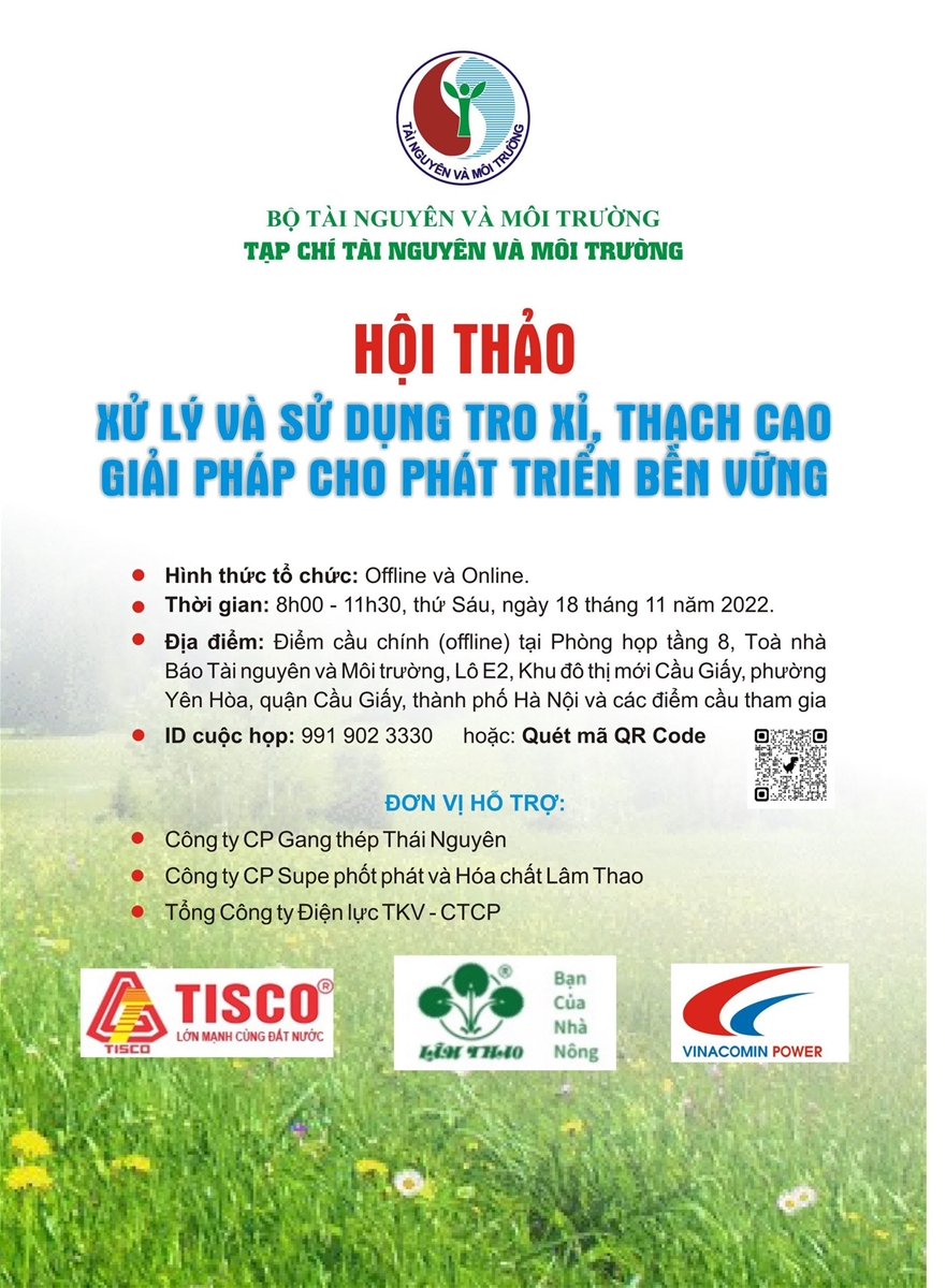 Ngày 18/11/2022, tại Hà Nội, Tạp chí Tài nguyên và Môi trường (Bộ Tài nguyên và Môi trường) sẽ tổ chức Hội thảo với chủ đề: “Xử lý và sử dụng tro, xỉ, thạch cao – Giải pháp cho phát triển bền vững”.